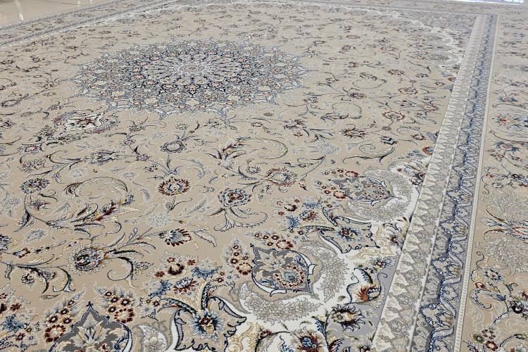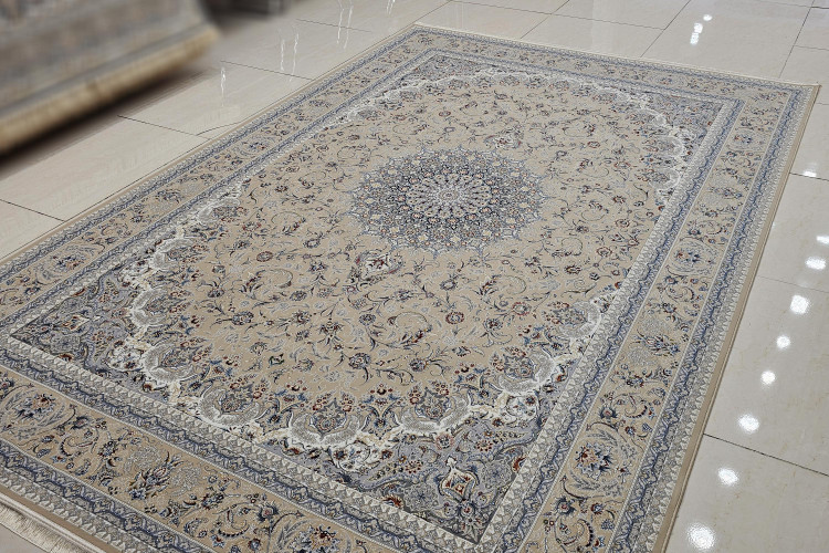 فرش1200 شانه بزرگان ایران مدل نایین بژ اکریلیک با ضخامت بالا