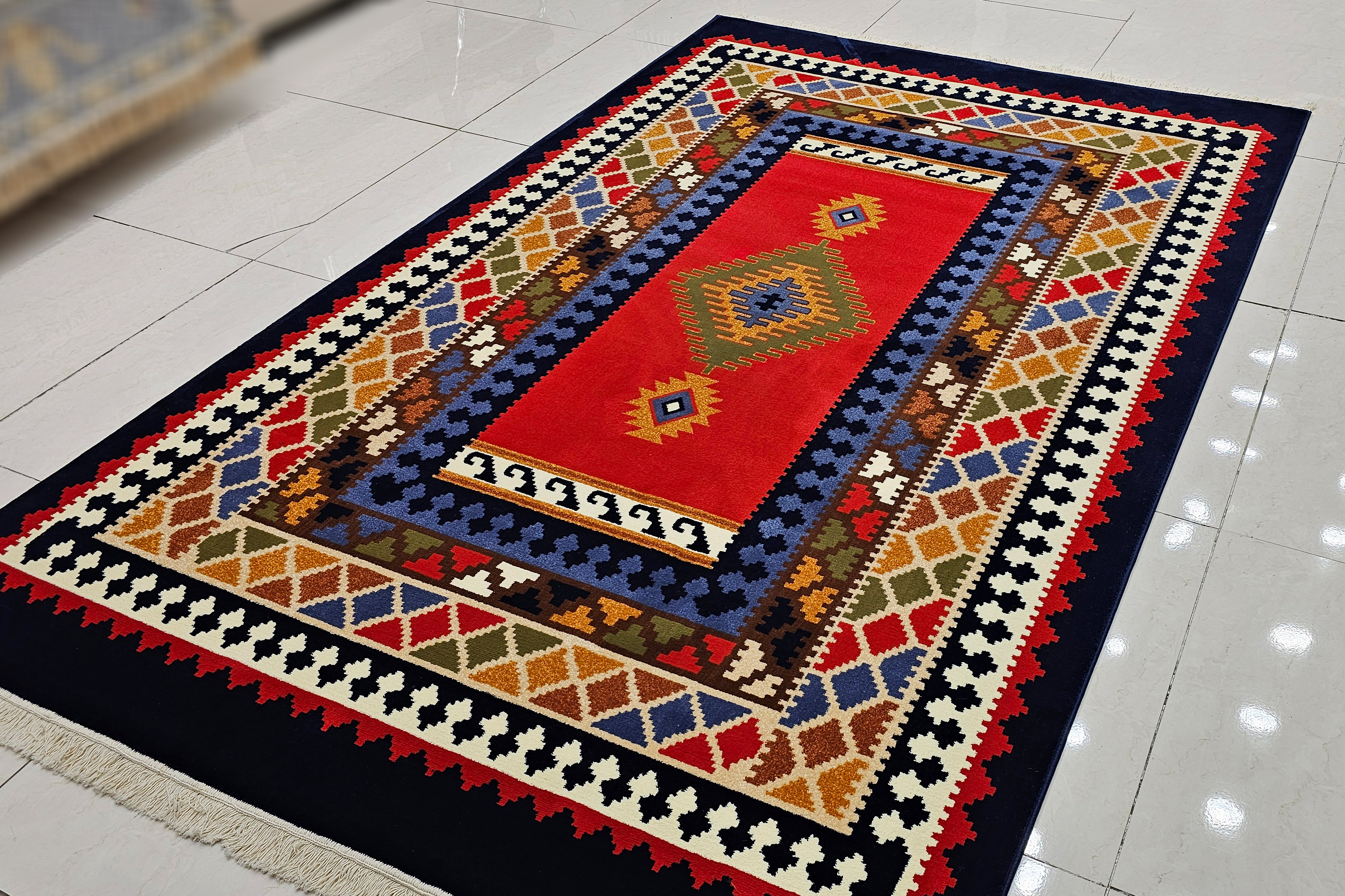 | ویژگی خاص | طرح هندسی سنتی، مناسب برای دکوراسیون اصیل ایرانی | مناسب برای فضاهای سنتی و مدرن | طرحی خاص با الهام از نقشهای عشایری | مناسب برای اتاقهای مدرن و سنتی |