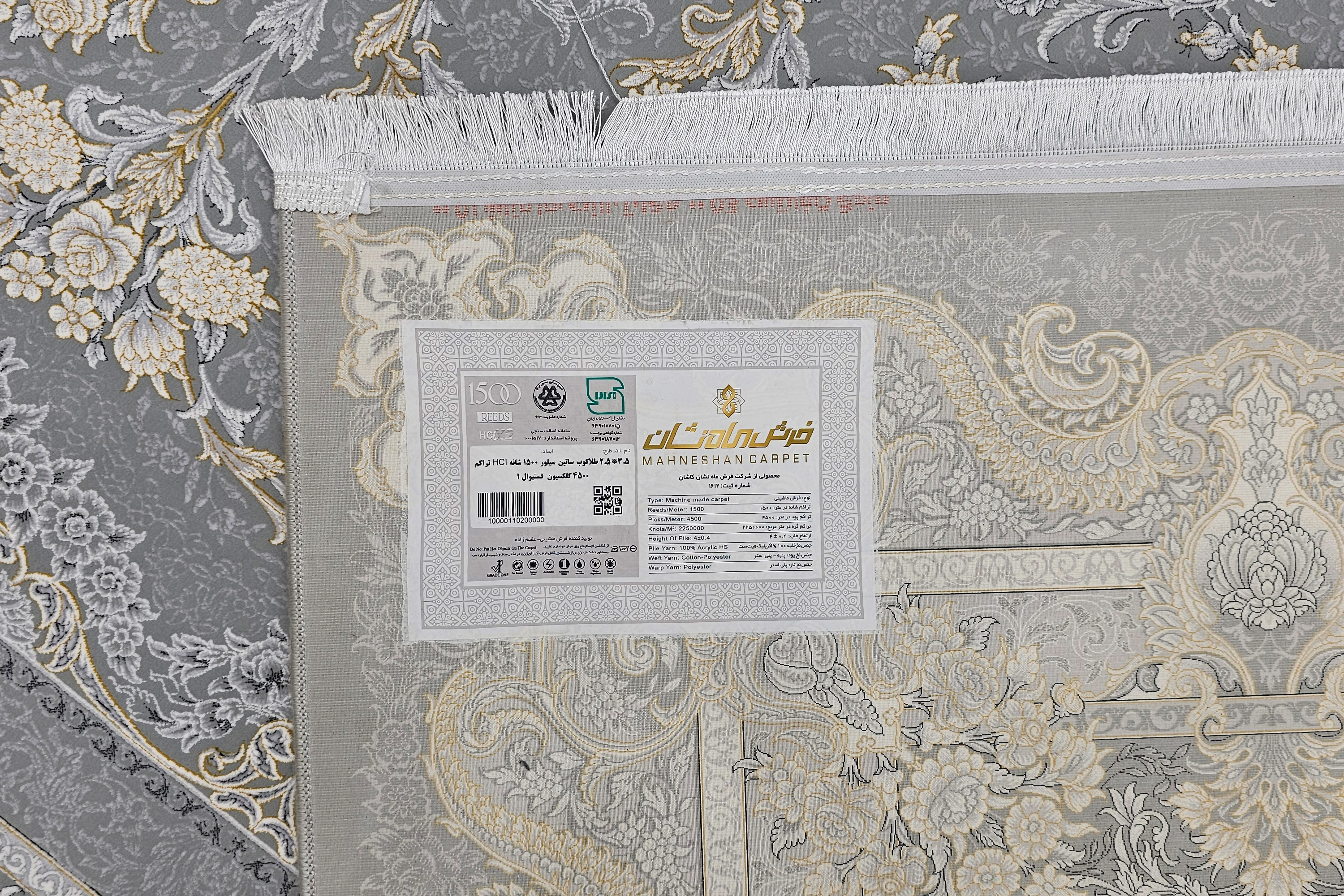 فرش ماشینی ماه نشان کاشان نقشه ساتین سیلور طلاکوب 1500 شانه