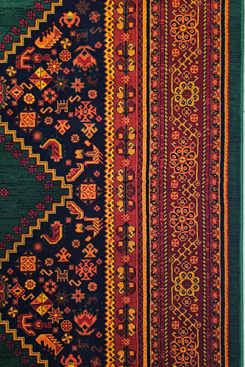 این فرش، گزینهای مقرونبهصرفه برای زیباسازی خانه با الهام از اصالت بلوچ و طراوت رنگ سبز است.