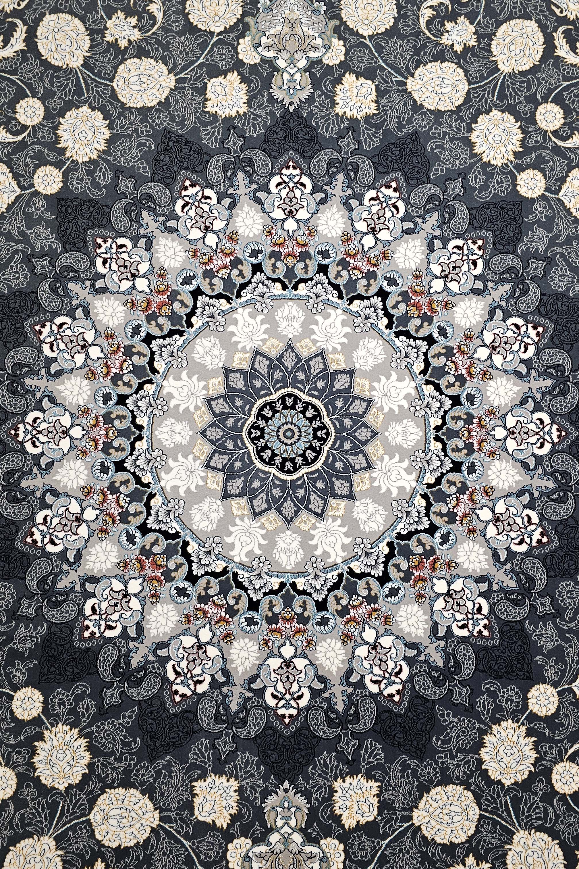 فرش 700 شانه جم نقشه اصفهان دودی 100%اکریلیک تراکم 2550 ضخیم