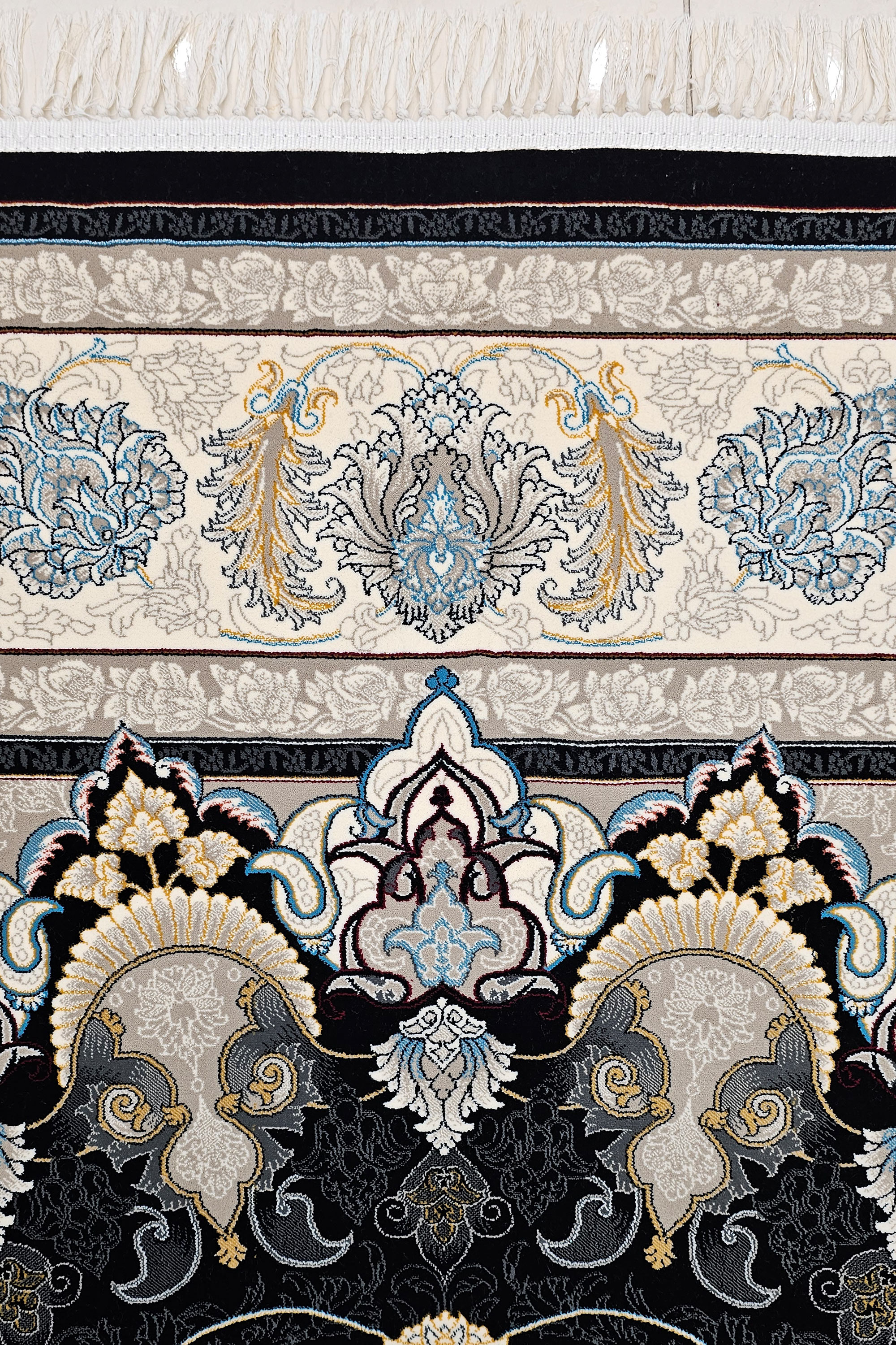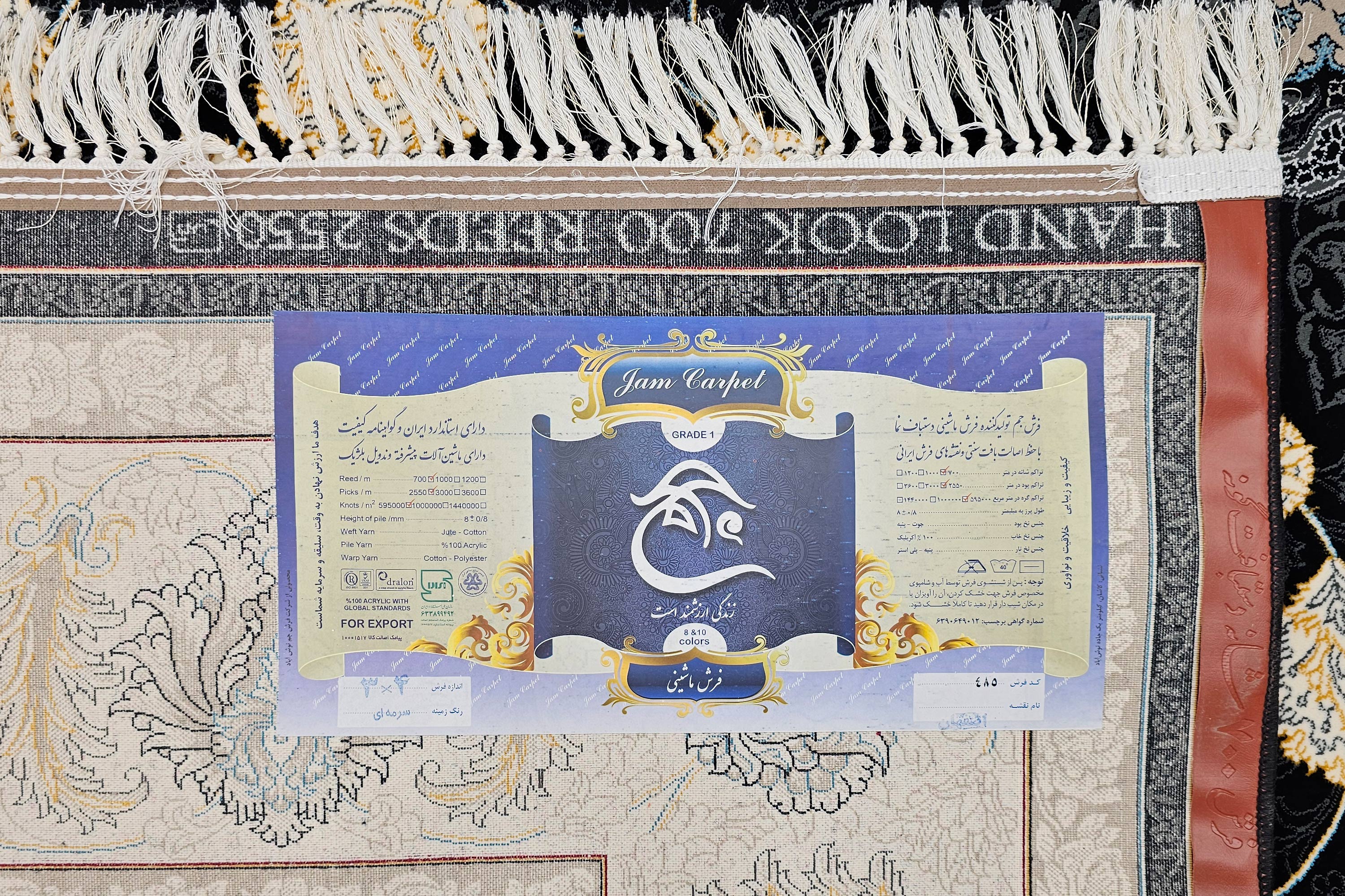 فرش ماشینی سرمه ای 700 شانه Jam Kashan – لبه فرش و گوشه ها
