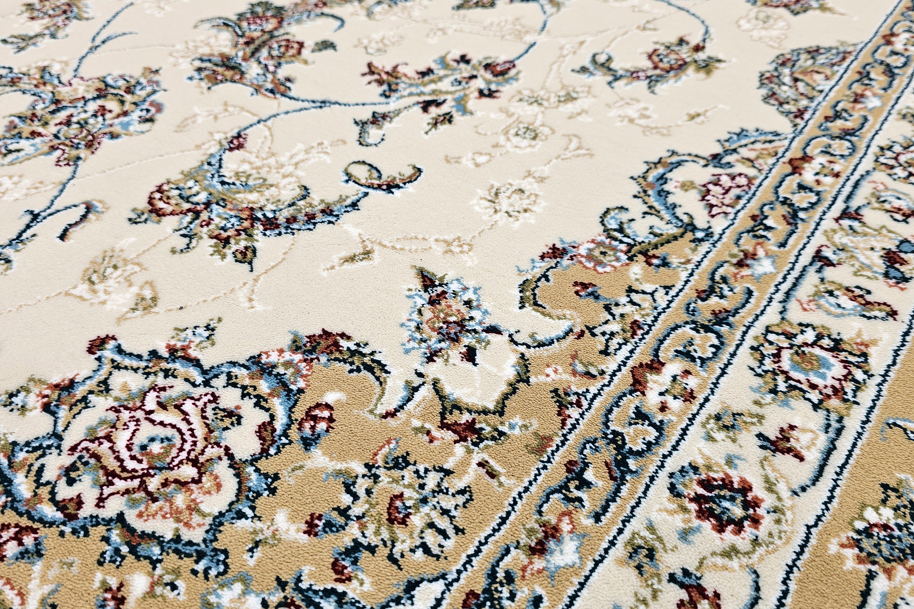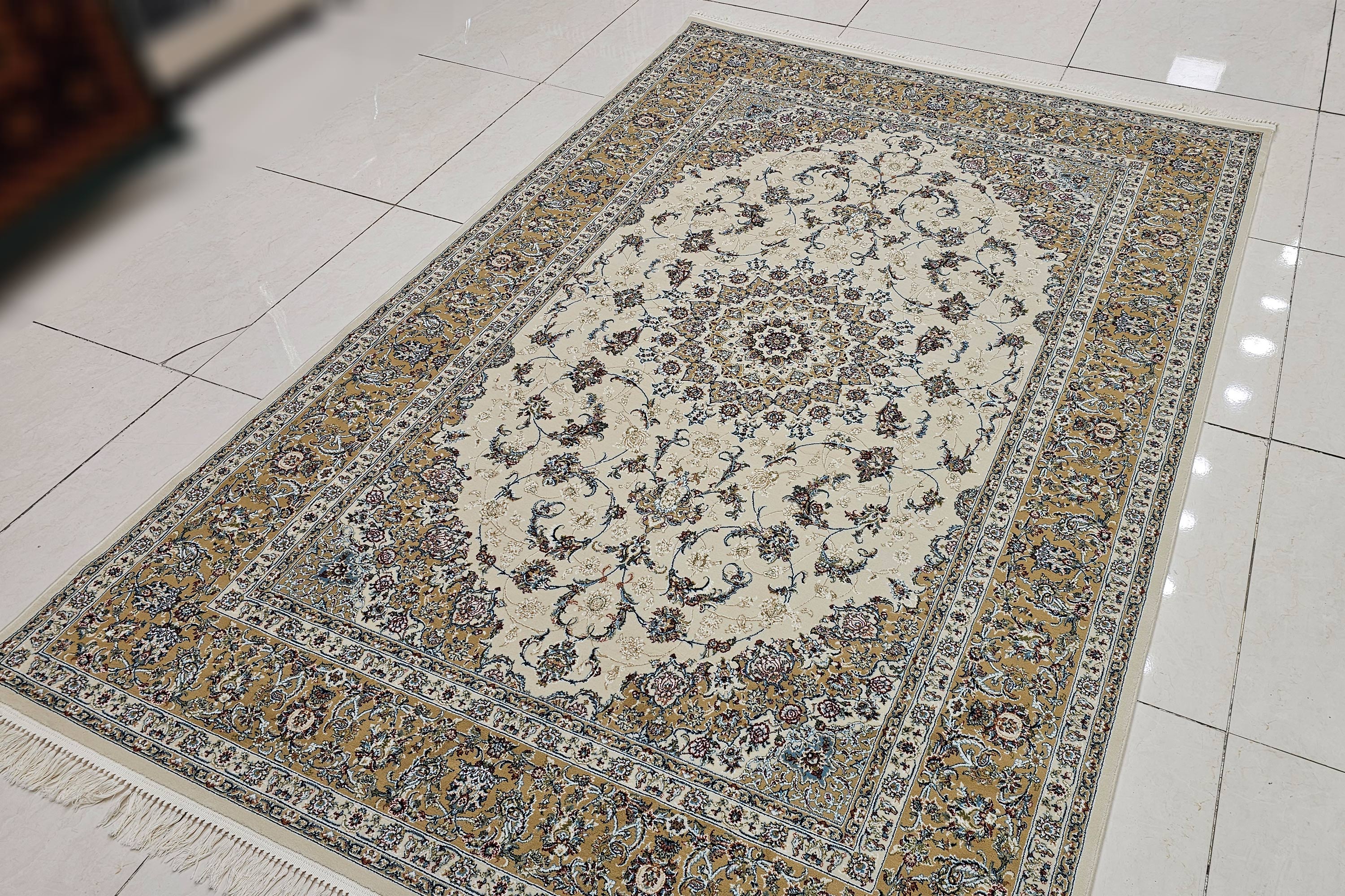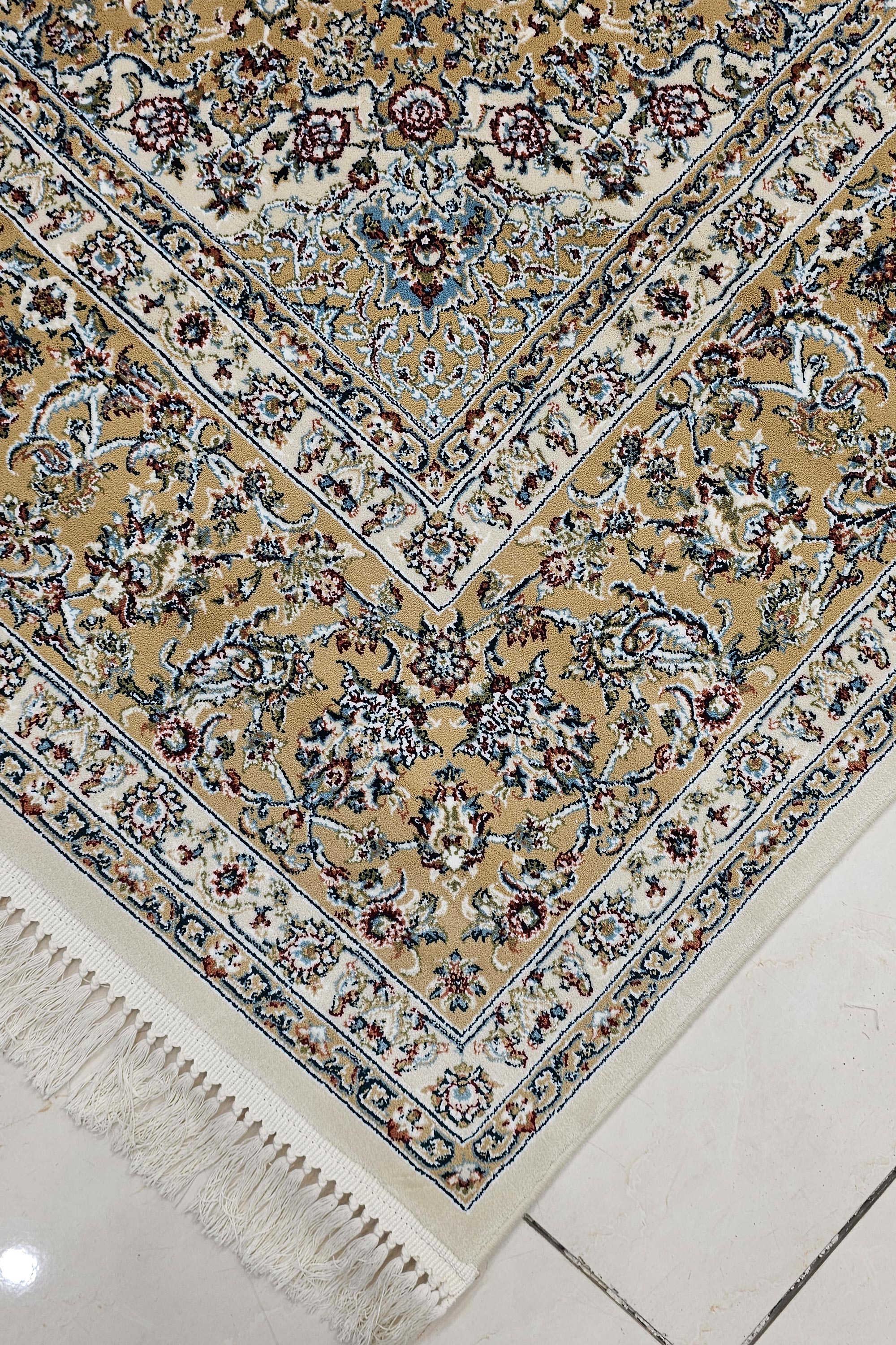 بافت دقیق، تعادل رنگها و انتخاب الیاف باکیفیت باعث شده تا این فرش خیلی نزدیک به فرشهای دستباف نایین شود — بهگونهای که برای چشم غیر حرفهای تشخیص واقعی یا ماشینی بودن آن دشوار میگردد. این یک مزیت رقابتی بسیار مهم در بازار فرش ماشینی است که ارزش خرید را بهطور چشمگیری افزایش میدهد.