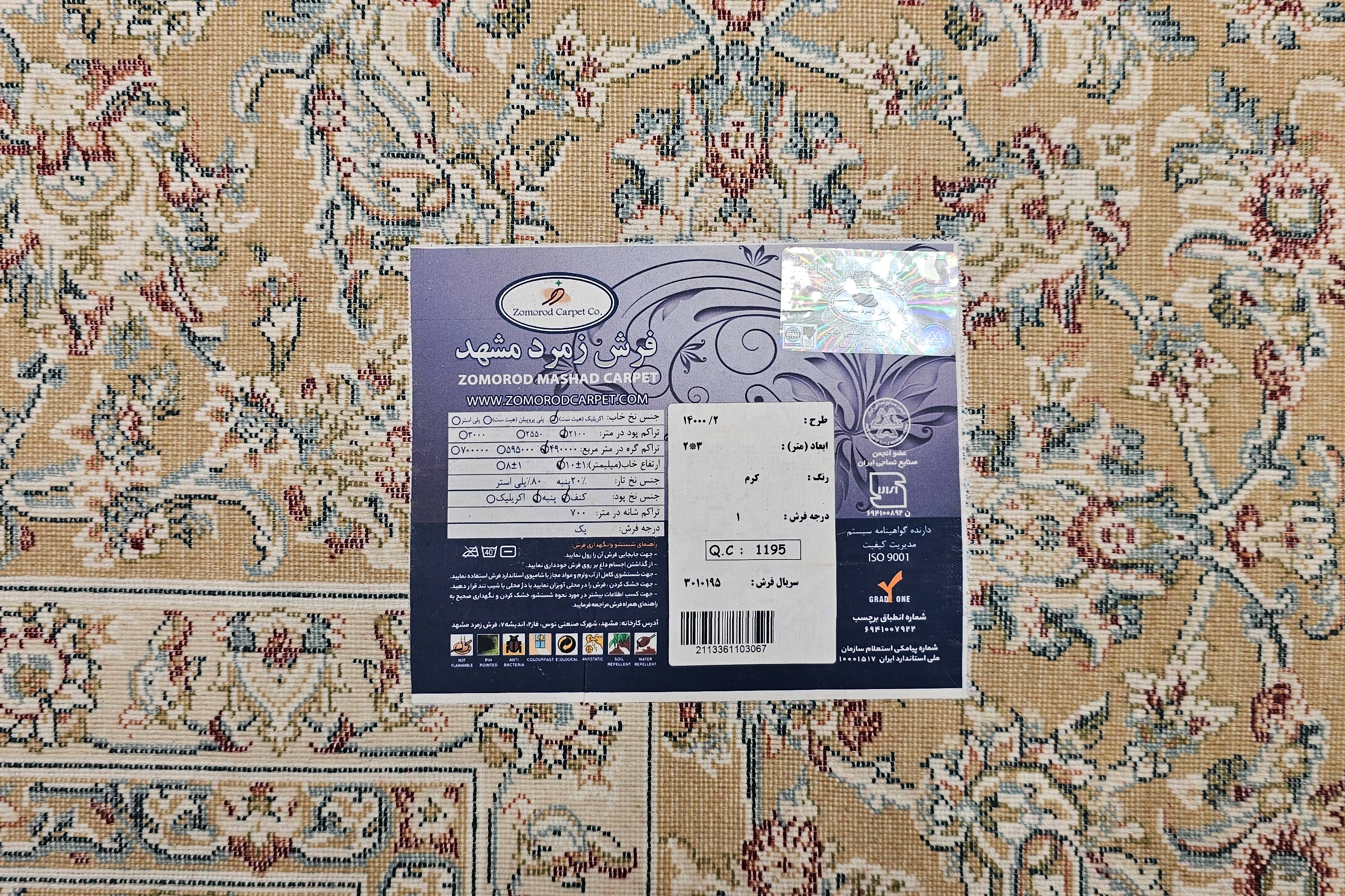 فرش 700 شانه زمرد مشهد نقشه لچک و ترنج کد 14000 کرم تراکم 2100