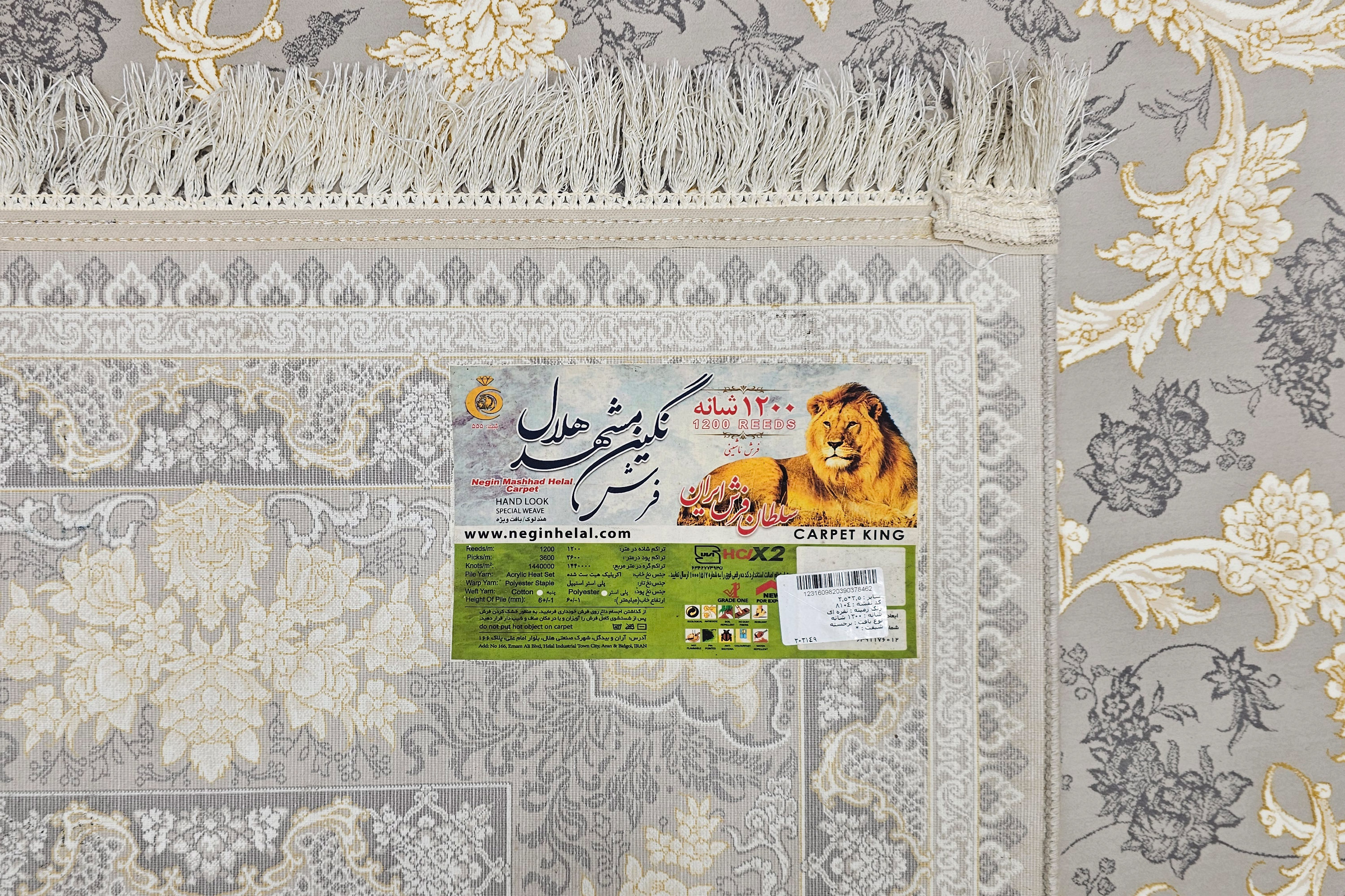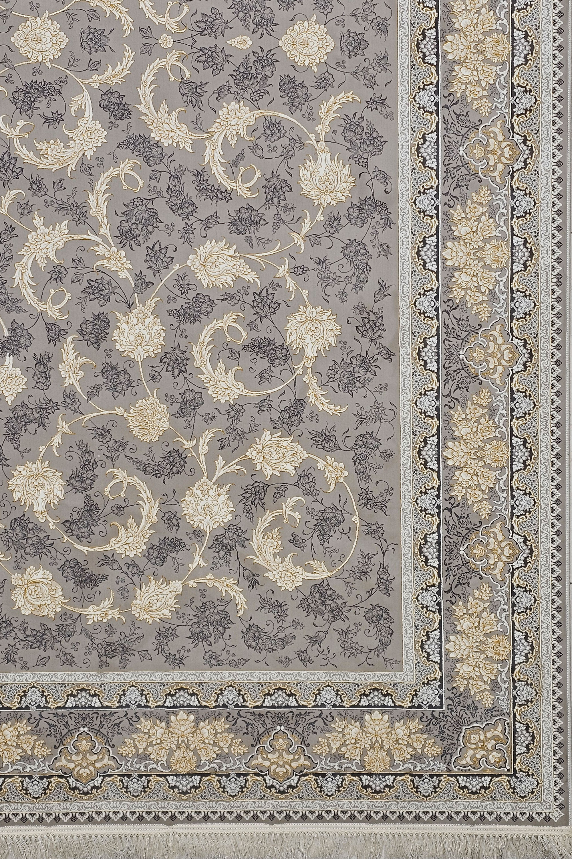 فرش تخفیفی نگین مشهد هلال کد8104 نقره ای 1200 شانه تراکم 3600 اکریلیک