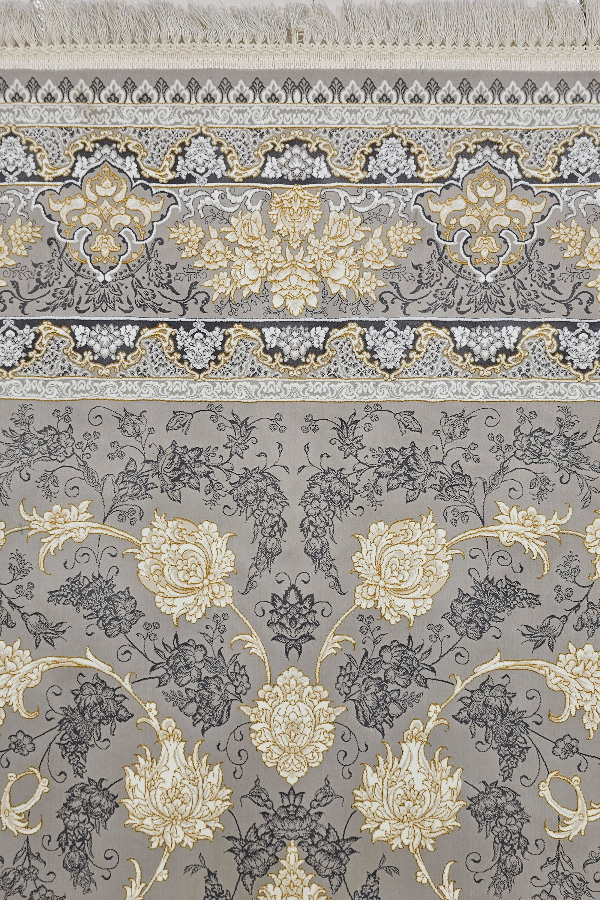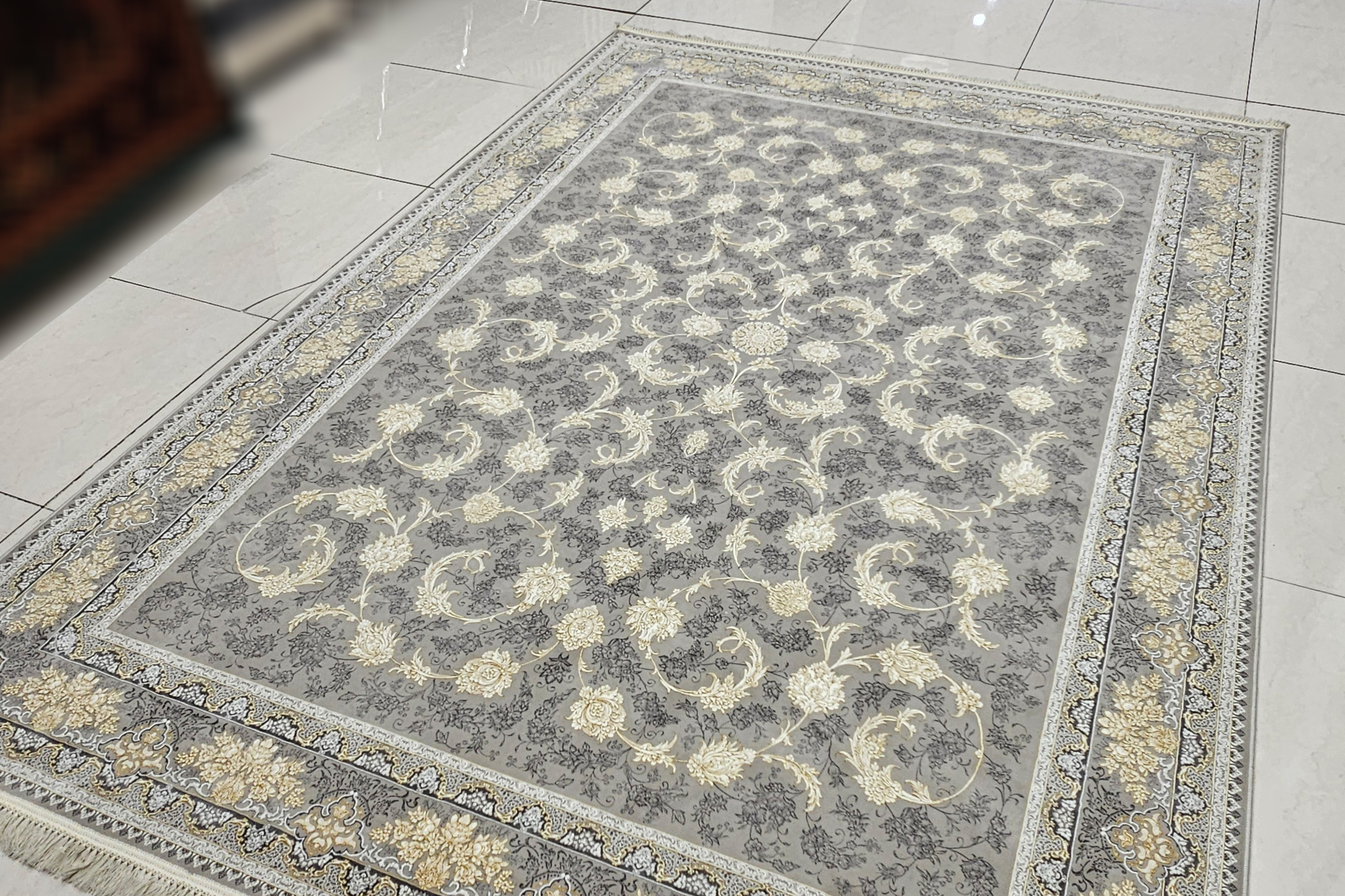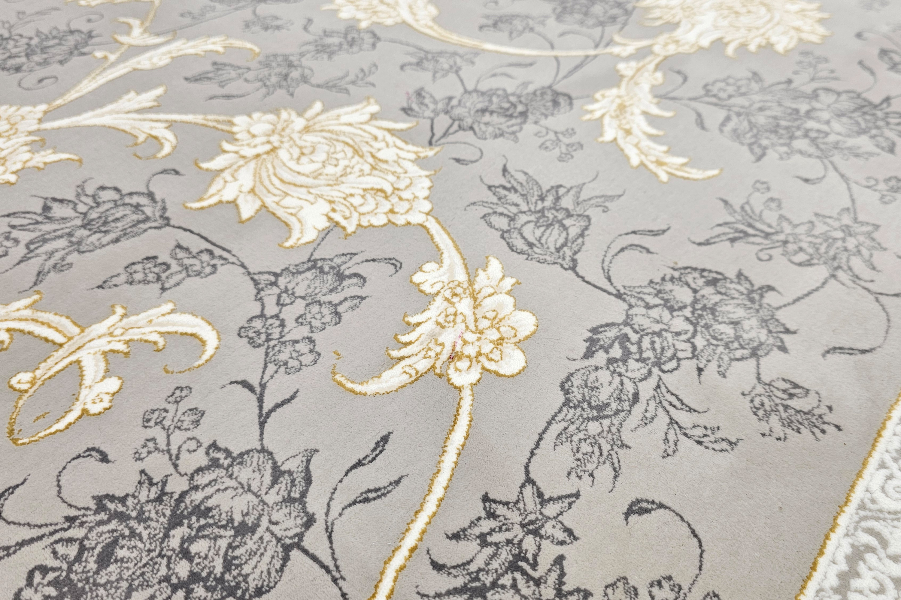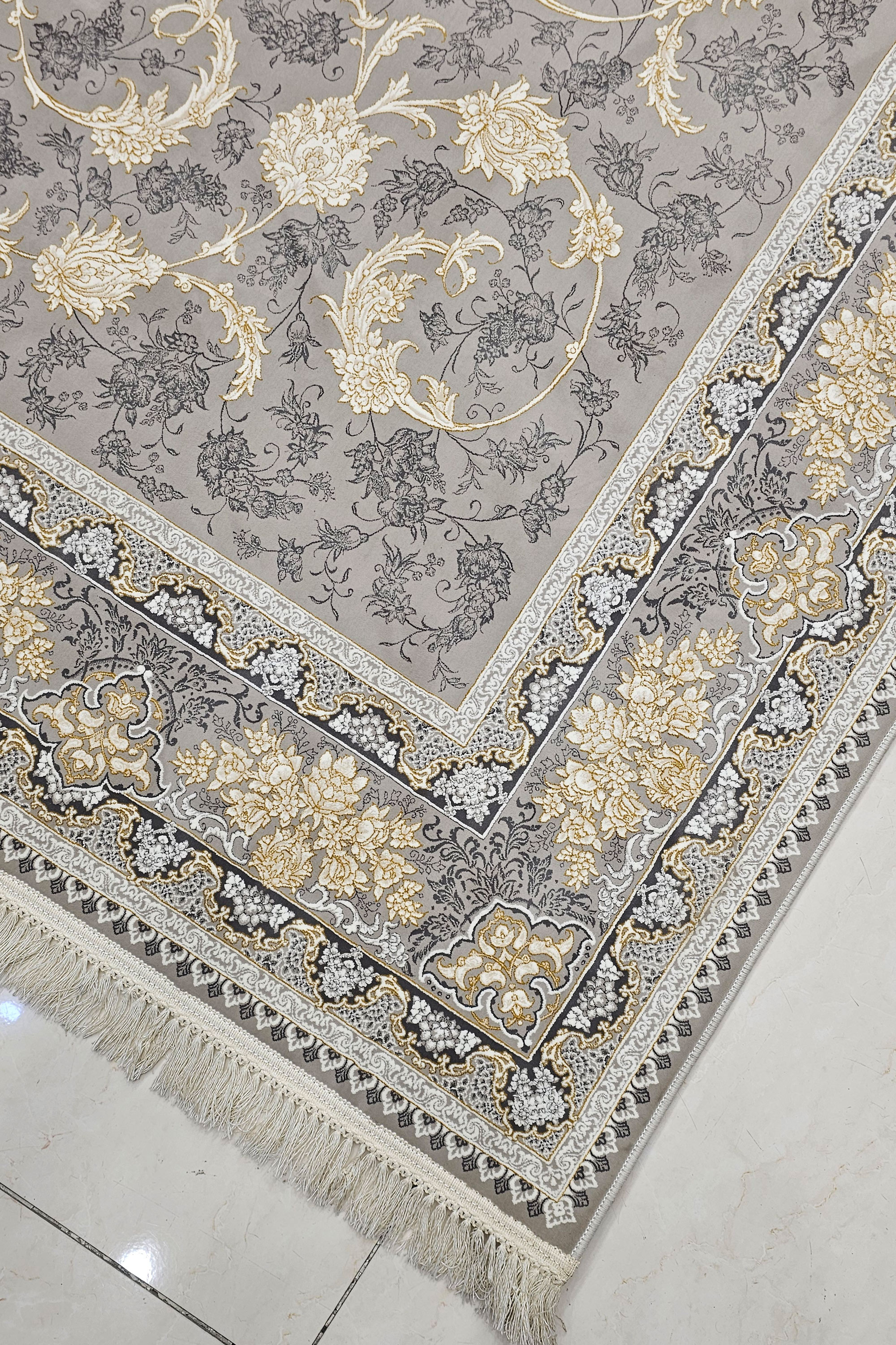 این فرش با ظرافت بالا و رنگ نقرهای کلاسیک مناسب: