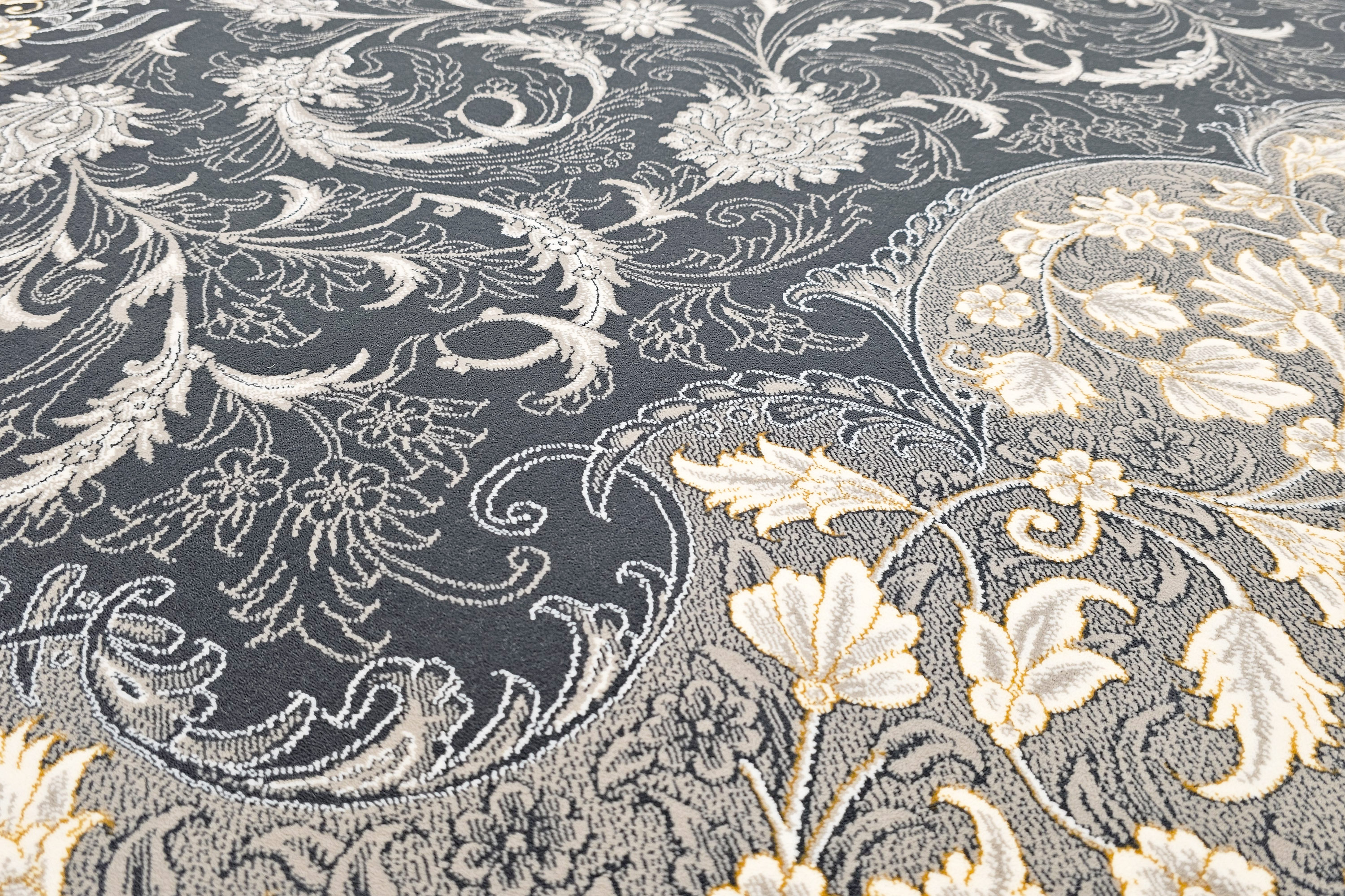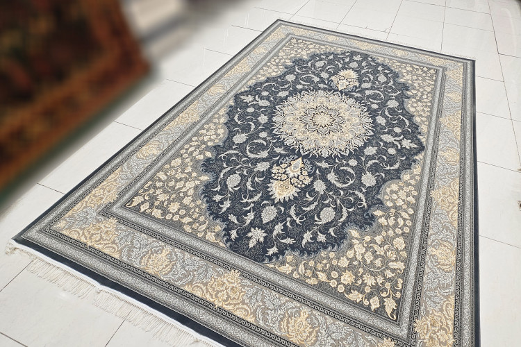 فرش 700 شانه جم نقشه گلایل دودی 100%اکریلیک تراکم 2550 ضخیم