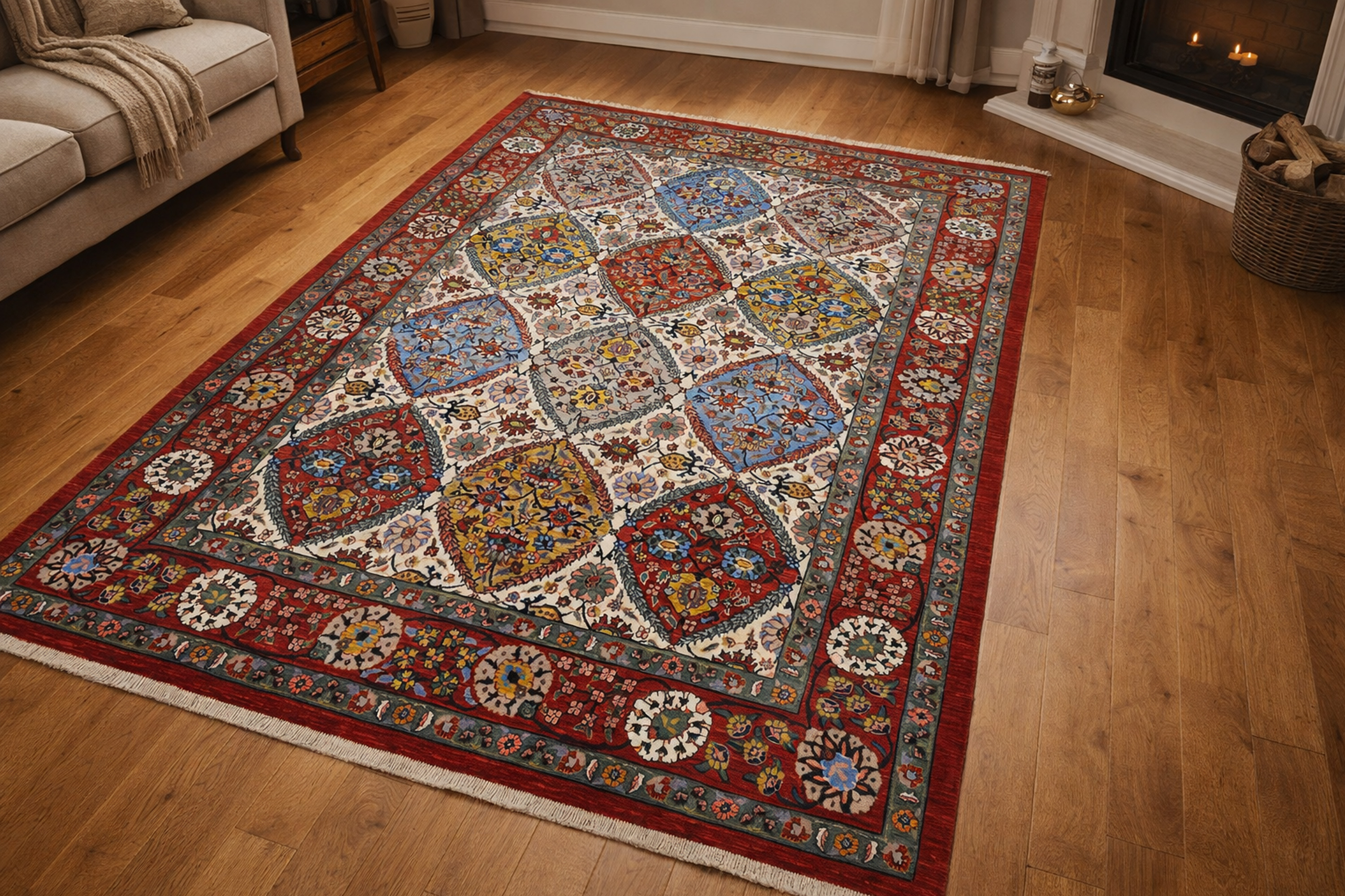 چرا این فرش با تمام فرشهای ماشینی بازار متفاوت است؟ ۱. الیاف ۱۰۰٪ طبیعی پشم: برخلاف اکثر فرشهای ماشینی که از الیاف مصنوعی (اکریلیک یا پلیاستر) تهیه میشوند، خاب این فرش از پشم طبیعی درجهیک بافته شده است. پشم خاصیت ضد حساسیت دارد، در زمستان گرم و در تابستان خنک است و با گذشت زمان، جلا و زیبایی بیشتری پیدا میکند.
