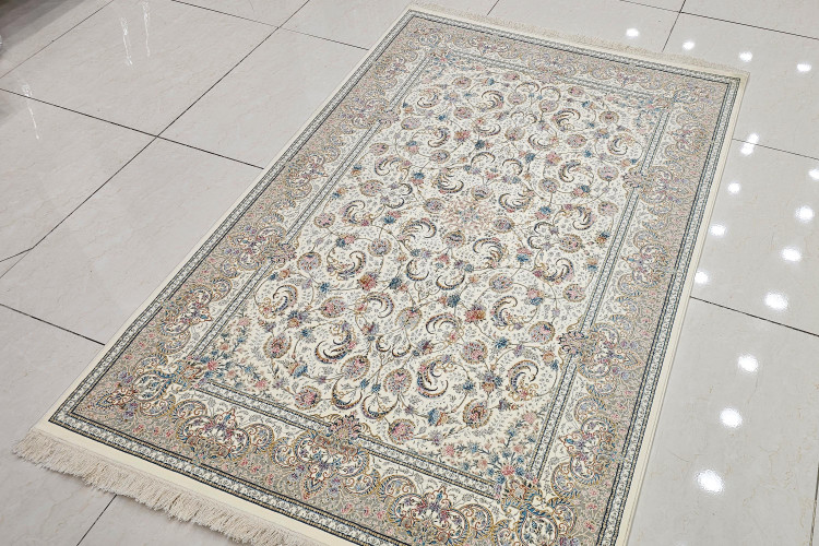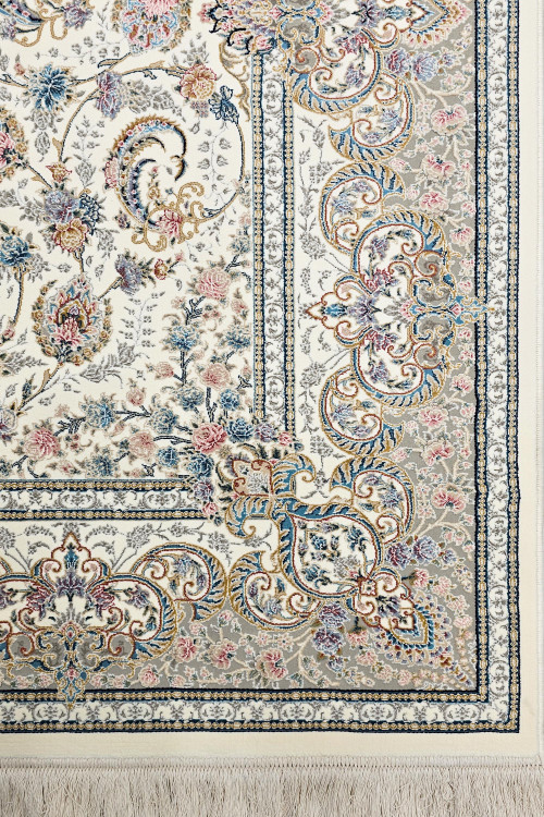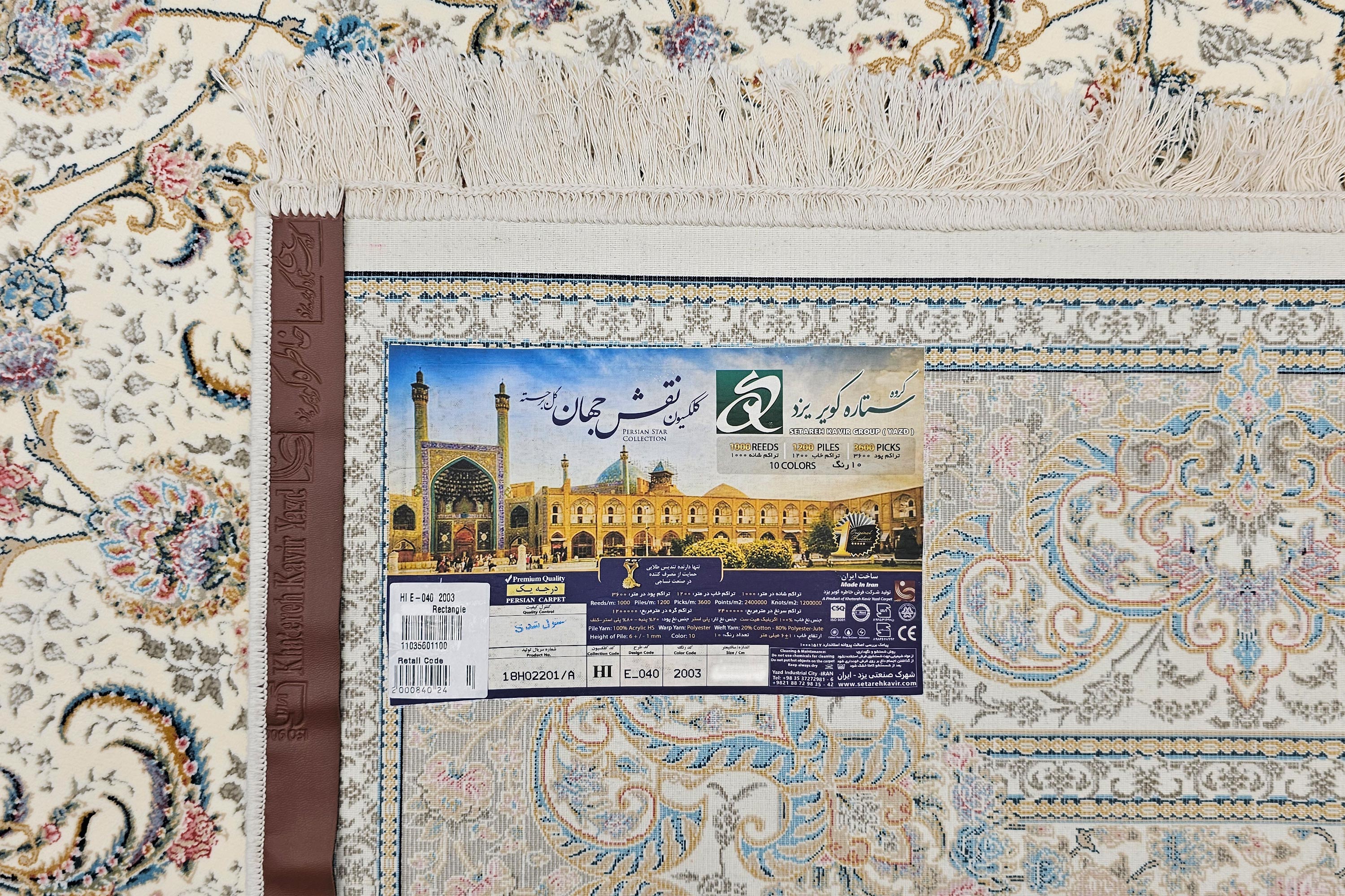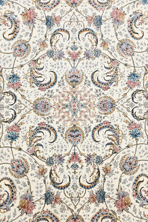 فرش 1000 شانه کویر یزد – کلکسیون نقش جهان کد E040-2003 تراکم 3600؛ ترکیب ظرافت و شکوه در یک فرش اصیل ایرانی