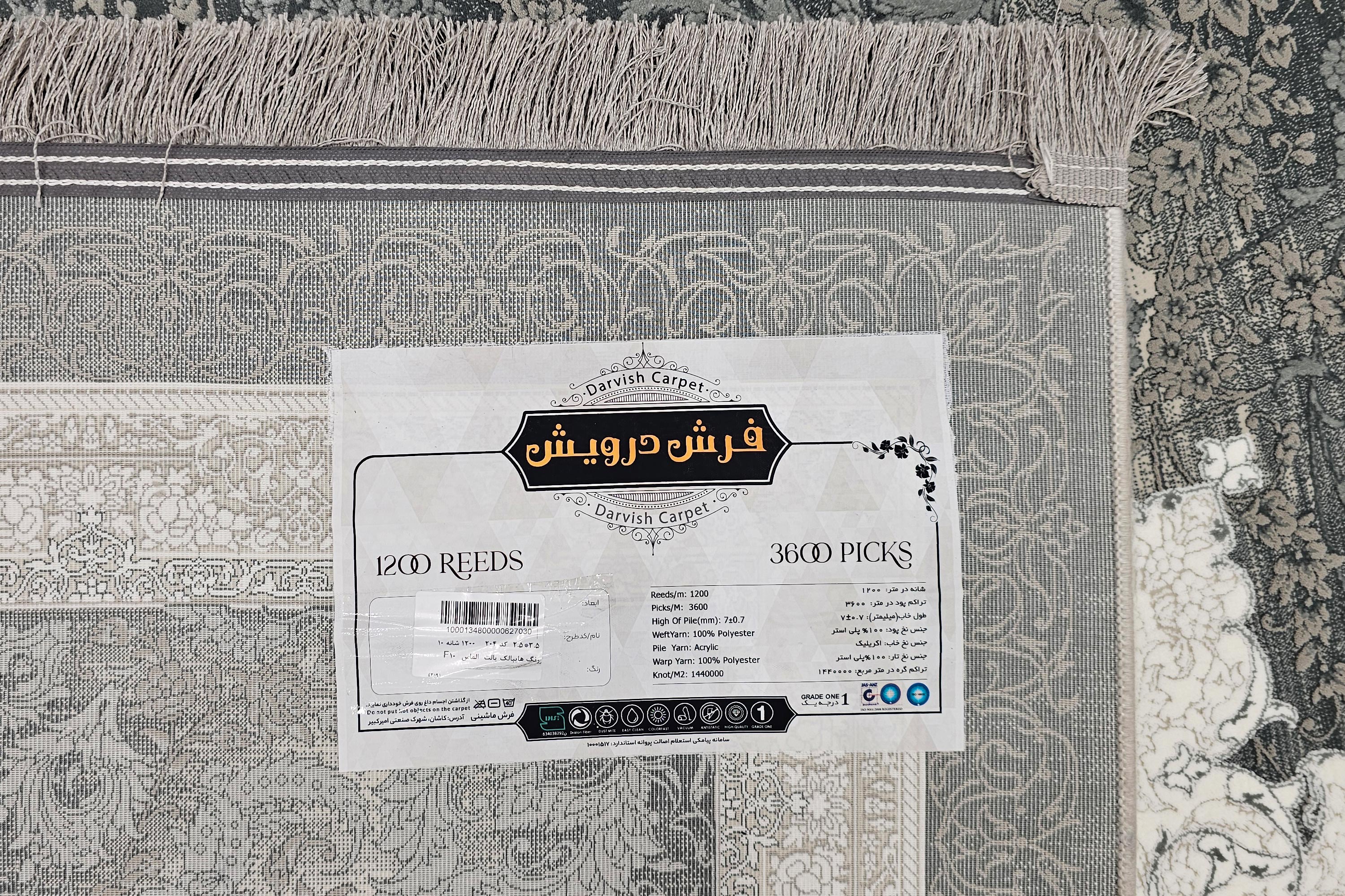 فرش 1200 شانه درویش کد204 طوسی تراکم 3600 100درصد اکریلیک