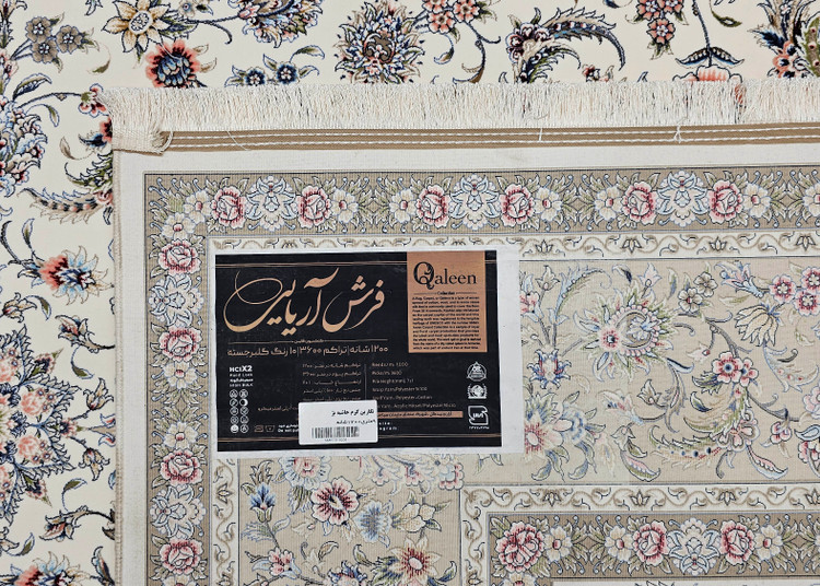 فرش طرح دستبافت 1200 شانه آریایی نقشه نگارین کرم حاشیه بژ