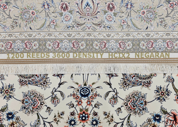 معرفی فرش طرح دستبافت 1200 شانه نقشه نگارین - رنگ کرم با حاشیه بژ