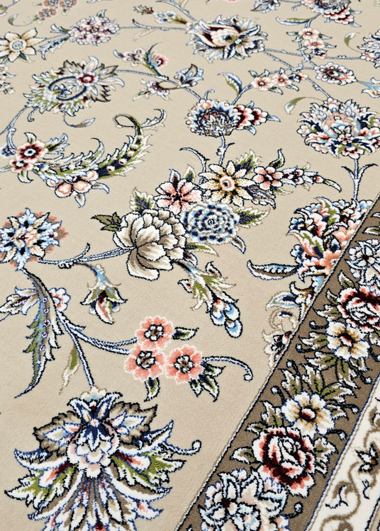 معرفی فرش طرح دستبافت 1200 شانه نقشه نگارین - رنگ بژ با حاشیه بژ