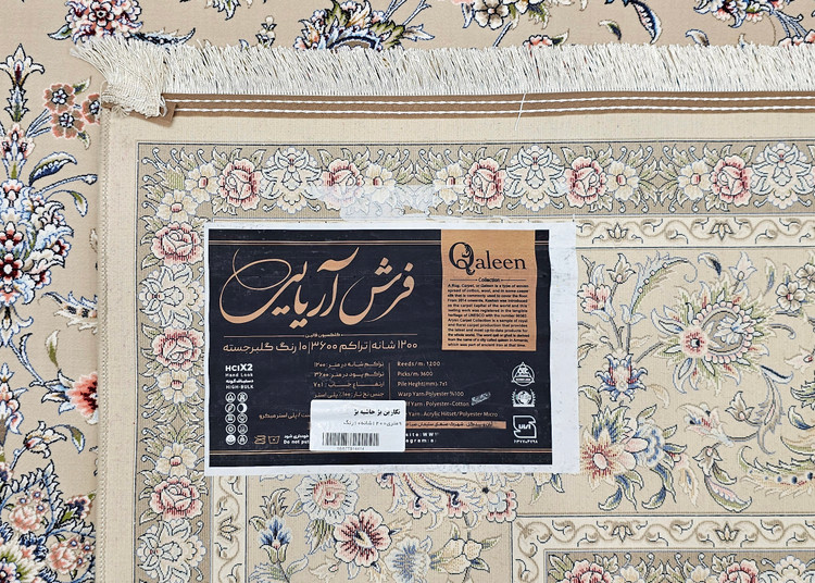فرش طرح دستبافت 1200 شانه آریایی نقشه نگارین بژ حاشیه بژ