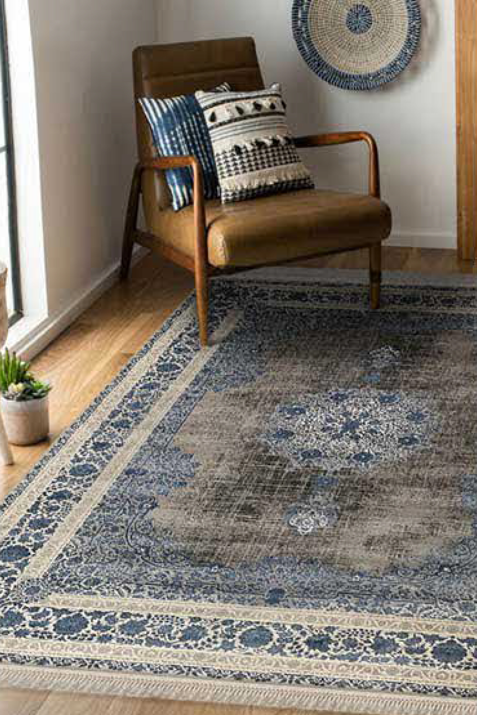 فرش پتینه 700 شانه سیزان کد 70005 ذغالی آبی گل برجسته مدرن
